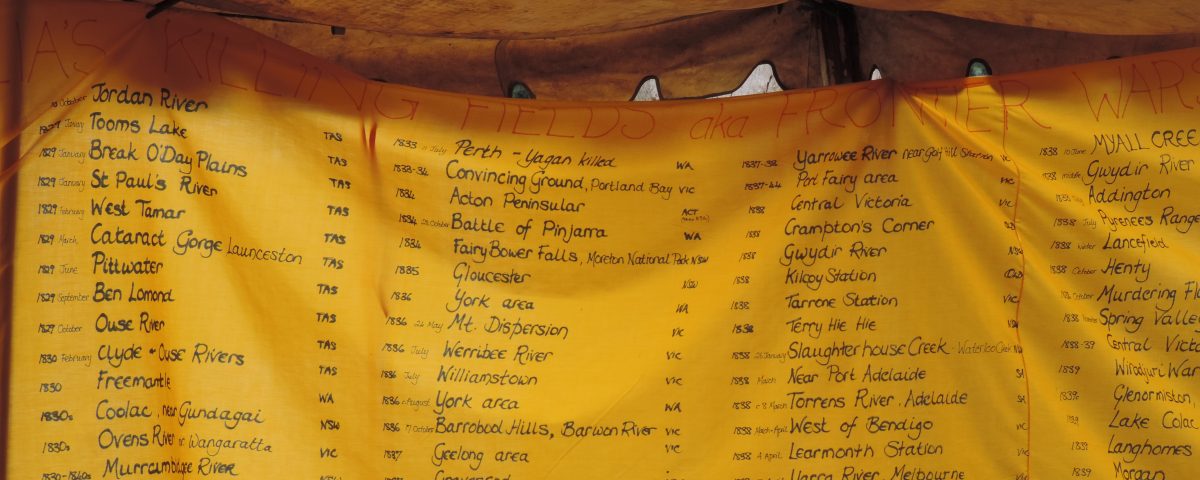 Frontier conflicts sites banner on display, Aboriginal Embassy, Canberra, 24 April 2017 Photo: Jane Morrison